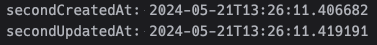 System.out.println("secondCreatedAt: " + secondCreatedAt);
