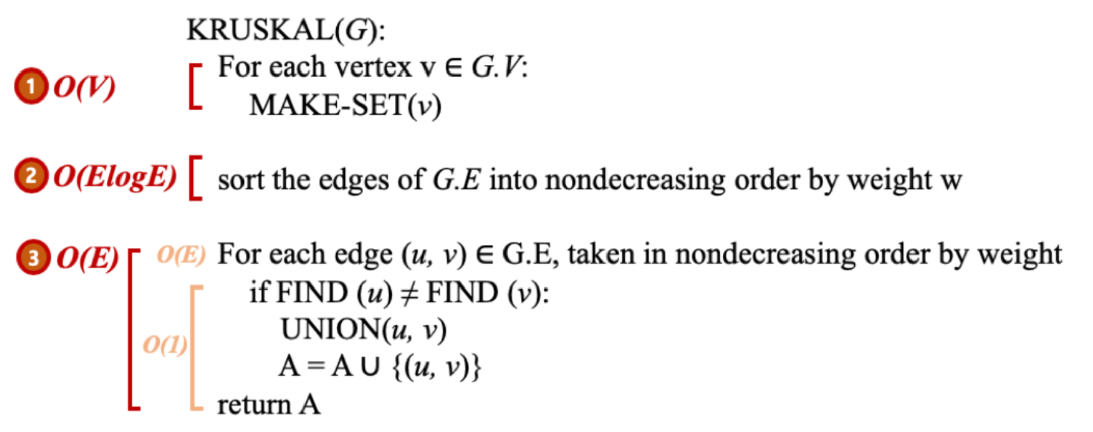 👉 union-by-rank와 path compression 기법 사용 시, 시간 복잡도는 다음 계산식을 만족함이 증명되었음!
