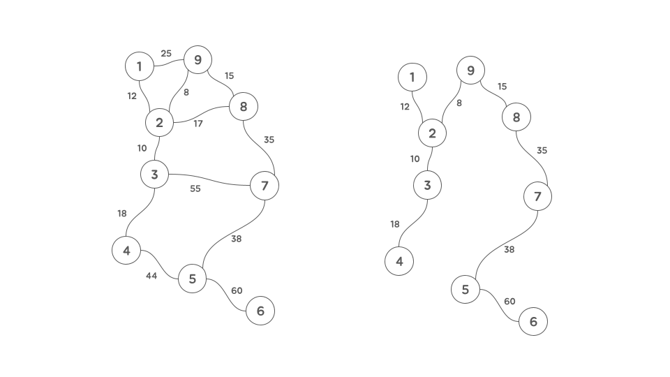 원래의 그래프의 모든 노드가 연결되어 있으면서, 트리의 속성을 만족하는 그래프