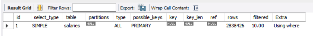 explain select * from salaries where emp_no = 10001 and from_date = '1986-06-26';