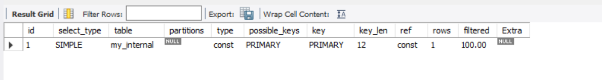 explain select * from my_internal where t_no = '1234'; # type: const