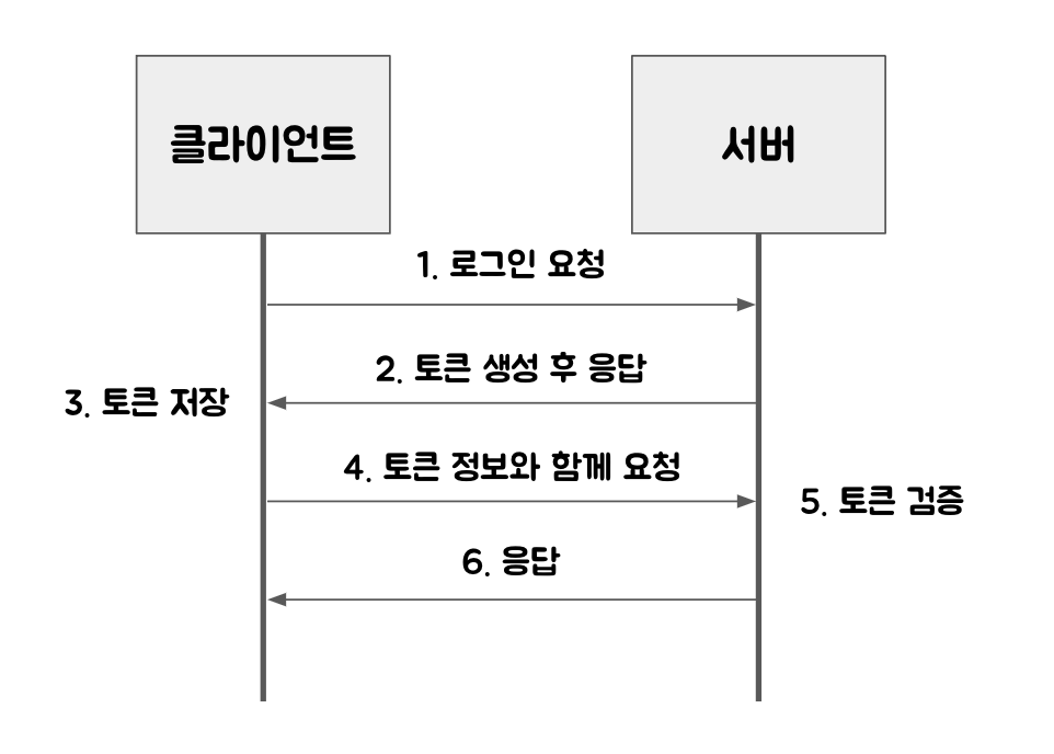 - 서버가 토큰을 생성해서 클라이언트에게 제공하면, 클라이언트는 이 토큰을 가지고 있다가 여러 요청을 이 토큰과 함께 신청
