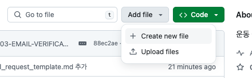 1️⃣ Github 버튼의 Add file - Create new file을 클릭해서
