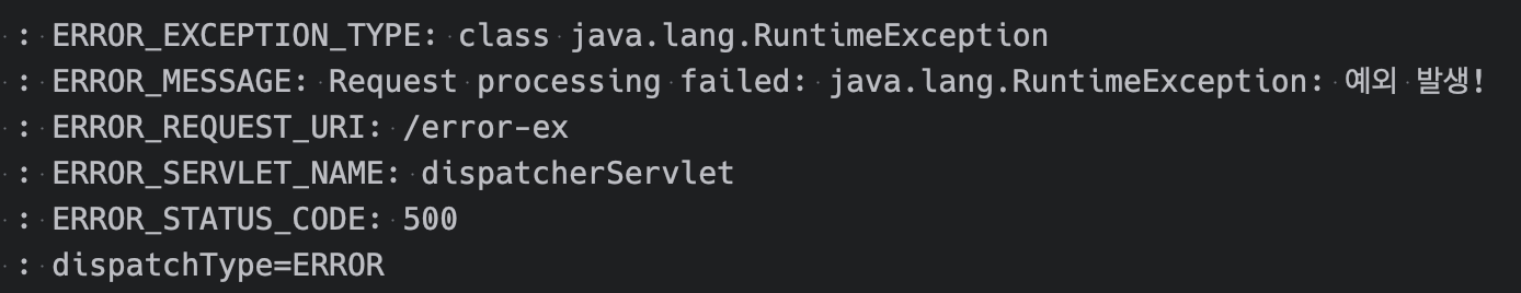 - WAS는 오류 페이지를 단순히 다시 요청만 하는 것이 아니라, 오류 정보를 request의 attribute에 추가해서 넘겨준다.