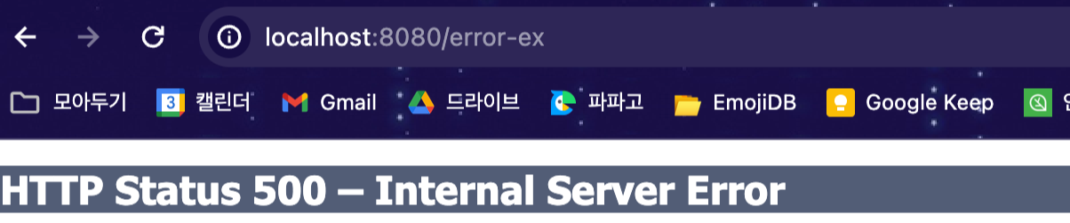 실행해 보면, 톰캣이 기본으로 제공하는 오류 화면을 볼 수 있다.