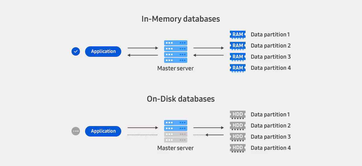 - 메모리에 데이터가 저장되기 때문에 매우 빠른 읽기 및 쓰기 성능