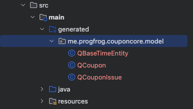 여기에 기존의 Entity 이름 앞에 Q가 붙은 QEntity가 생성된다.