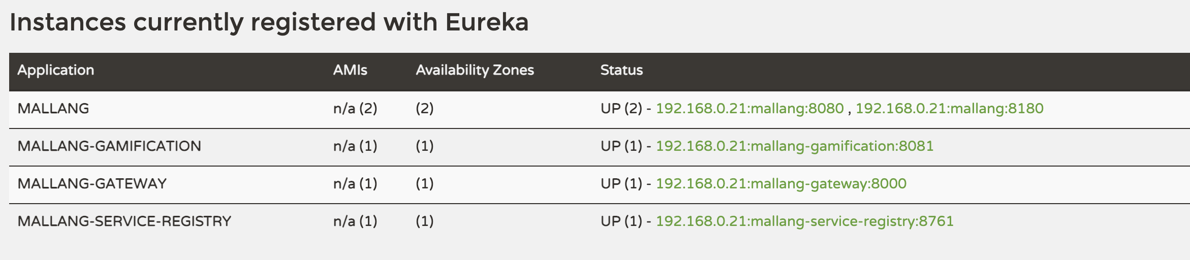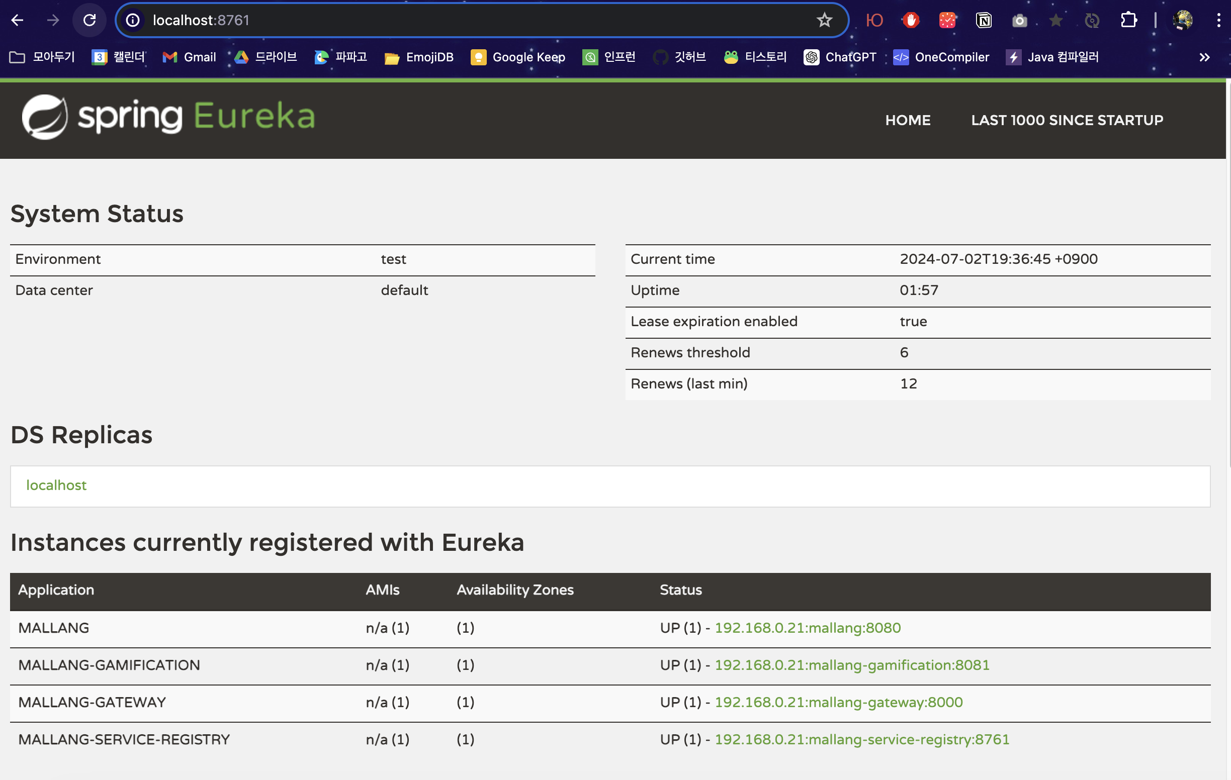 - 마지막 부분에서 ribbon.eureka.enabled 설정값을 false로 설정한다. 유레카와 리본을 아직 도입하지 않았기 때문이다! 애플리케이션을 차근차근 개선하자.