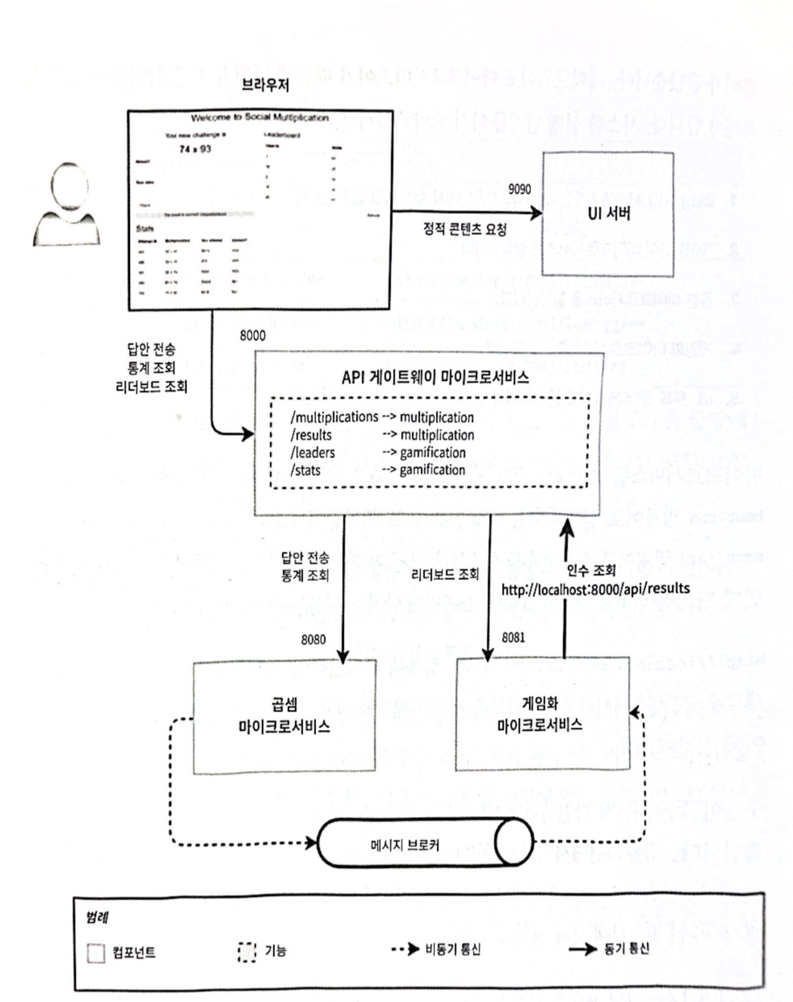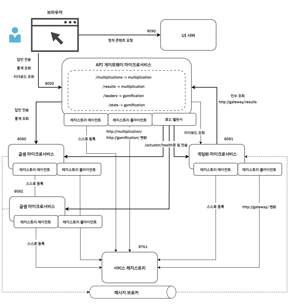 백엔드 쪽에서는 게임화 서비스가 곱셈 서비스를 직접 호출하는 대신 API 게이트웨이를 통과하도록 수정한다.