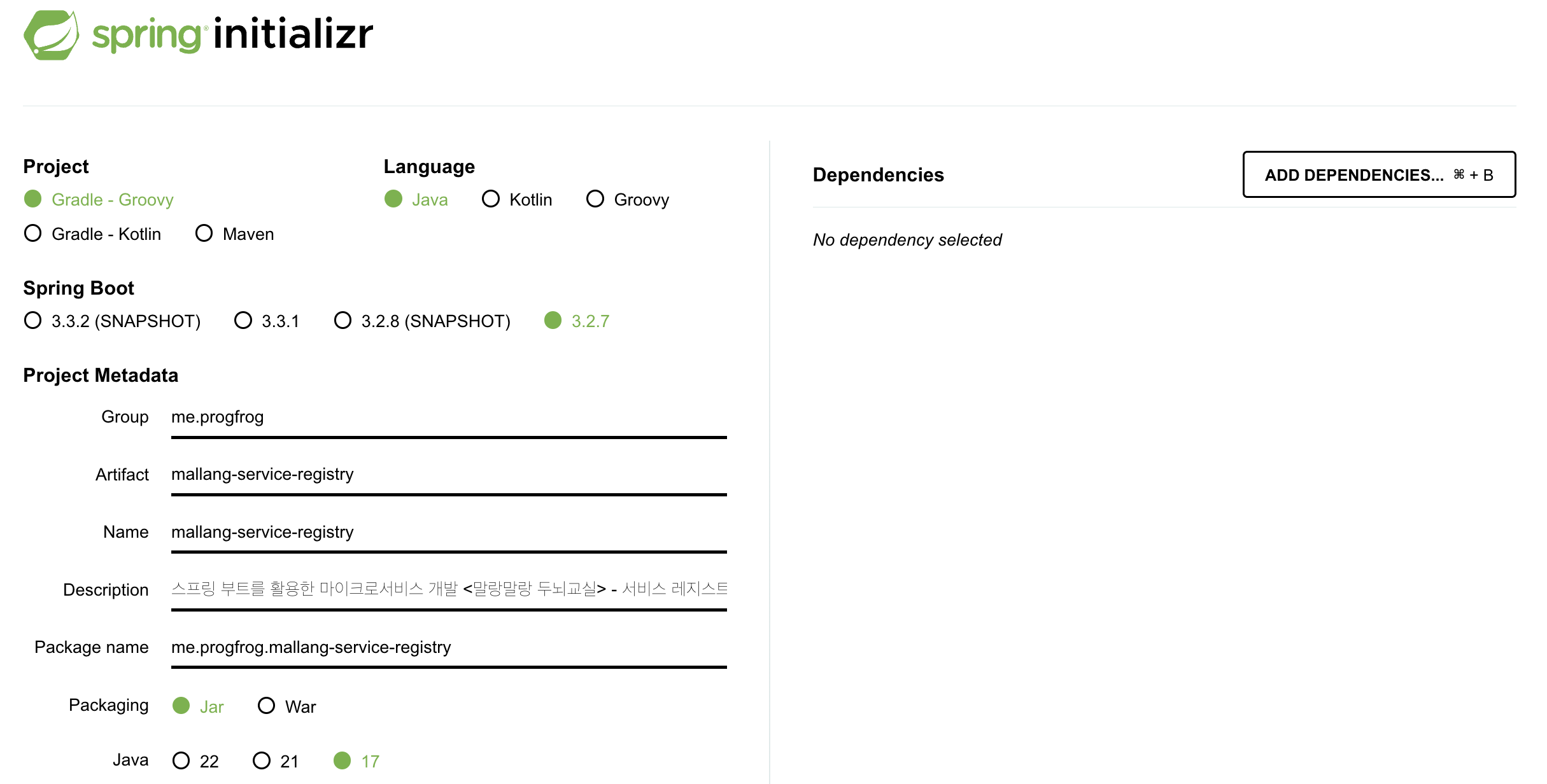 스프링 부트 2로 변경하고, 해당 버전에 맞는 Spring Cloud 버전을 설정해 주었다. Gradle 버전을 6.8.3으로 변경한 지라 Java도 이에 맞춰 11 버전으로 변경해 주었다. Spring Cloud 버전은 아래 링크에서 참고했다.
