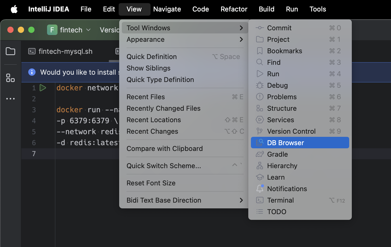 그러면 드디어!! View - Tool Windows 에도 DB Browser가 보이기 시작한다. 오오...