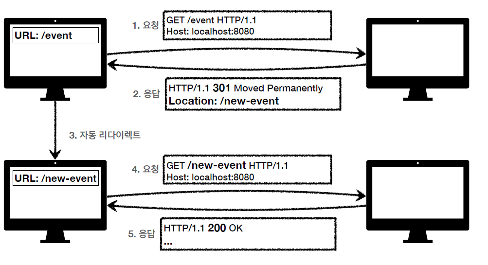 - 클라이언트에서는 자동 리다이렉트를 Location에 있는 /new-event 로 수행