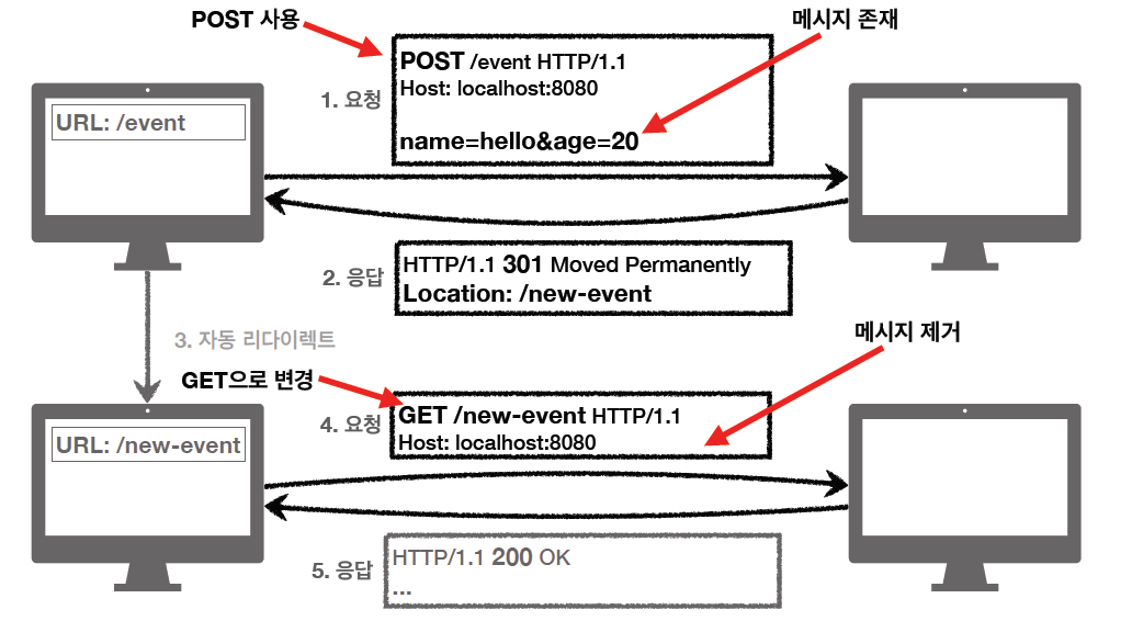 - 처음 스펙을 만들 때에는 POST를 보내면, 리다이렉트도 POST를 유지하는 것이었으나...