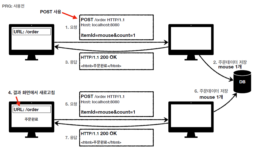 - POST로 주문 후에 주문 결과화면을 GET 메서드로 리다이렉트